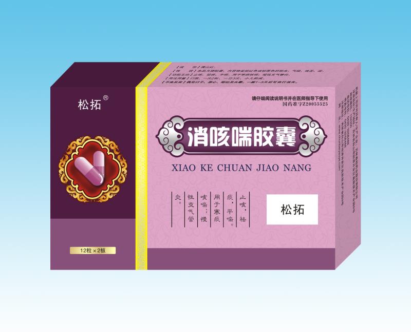 | 產(chǎn)品性能 | 止咳,祛痰,平喘。用于寒痰咳喘;慢性支氣管炎。消咳喘膠囊 12粒 X 2板/盒 X 200盒/件 服用天數(shù):4天 |