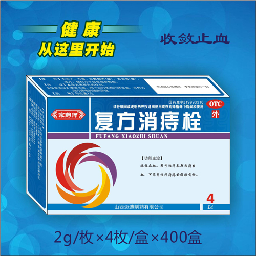 | 產(chǎn)品性能 | 消腫生肌,清熱潤(rùn)便,補(bǔ)氣固脫,止血,止痛 用法用量 外用,一次1枚,一日1次,洗凈肛門(mén),將藥塞入。 規(guī) 格 2g*6枚 |