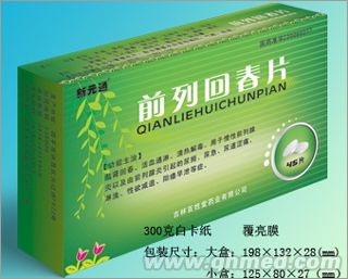 | 產(chǎn)品性能 | 益腎回春,活血通淋,清熱解毒。用于慢性前列腺炎以及由前列腺炎引起的尿頻、尿急、尿道澀痛,淋濁,性欲減退,陽痿早泄等癥。 用法用量 口服,一次5片,一日2-3次。30天為一個療程。 規(guī) 格 0.3g*30片 |