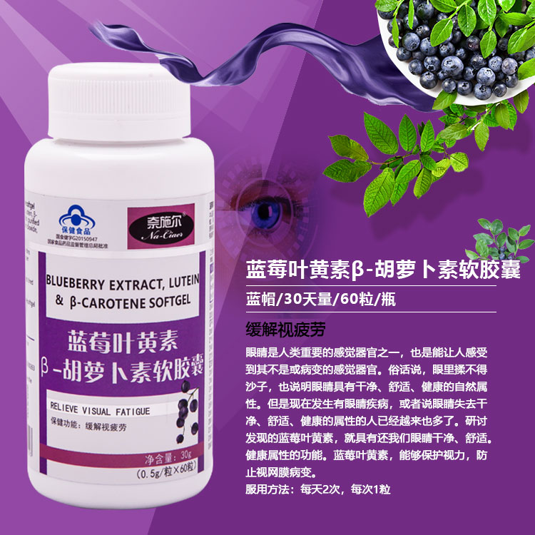 藍(lán)莓葉黃素β-胡蘿卜素軟膠囊醫(yī)藥招商