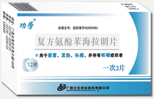 | 本品為對乙酰氨基酚、咖啡因、鹽酸麻黃堿、鹽酸苯海拉明所組成復(fù)方制劑。易吸收、見效快,口服,一次2片,一日3次,規(guī)格:12片×1板/盒×500盒/件。批準(zhǔn)文號:國藥準(zhǔn)字H22025593 |