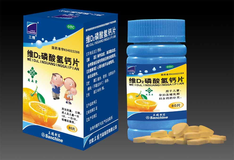 【藥品名稱】 維D2磷酸氫鈣片 【藥品性能】 用于兒童,孕婦及哺乳期婦女改的補(bǔ)充 【產(chǎn)品規(guī)格】 80片 【用法用量】 口服,成人及兒童一次1片,一日1次,咀嚼后服用 【批準(zhǔn)文號(hào)】 國(guó)藥準(zhǔn)字H34022286 【產(chǎn)品賣點(diǎn)】 藥準(zhǔn)字,水果味,孕產(chǎn)婦可用