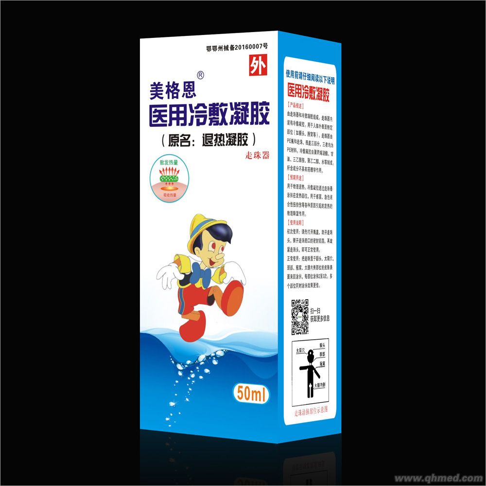 用于物理退熱。冷敷凝膠通過(guò)走珠器涂抹在發(fā)熱部位,用于感冒、急性閉合性扭挫傷等各種原因引起的發(fā)熱的物理降溫作用。