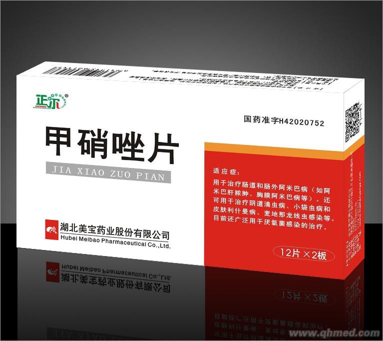 用于治療腸道和腸外阿米巴病(如阿米巴肝膿腫、胸膜阿米巴病等)。還可用于治療陰道滴蟲病、小袋蟲病和皮膚利什曼病、麥地那龍線蟲感染等。目前還廣泛用于厭氧菌感染的治療。