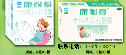 【產(chǎn)品名稱】:十維鋅、鐵、鈣膠囊(康耐得)